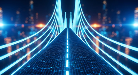 Abstract digital bridge representing network, data, and global connection. Modern technology concept.