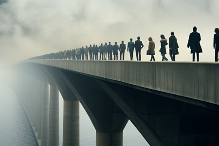 Capturing the Scenic Allure: People Strolling along the Magnificent Bridge --ar 3:2