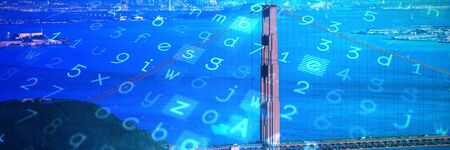Golden Gate Bridge Integrated In Digital Network, Technology Concept, San Francisco Skyline