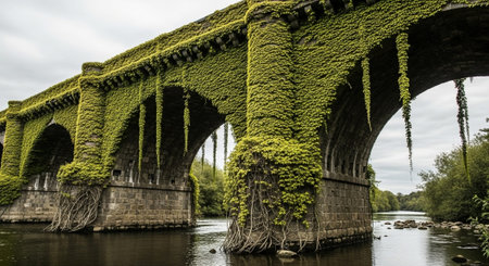 old arched road bridge over a river