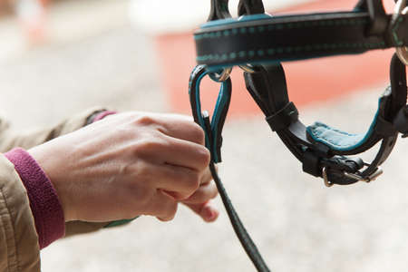 hands attached horse leather head collar