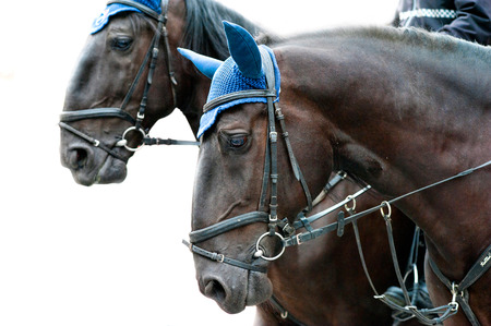 Close-up portrait of a horse in the bridle. Equestrian sport