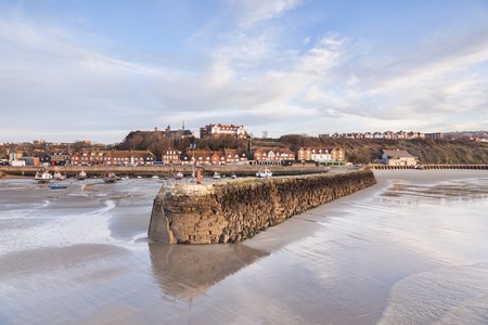 Saltburn by the Sea city at sunset in North Yorkshire UK.