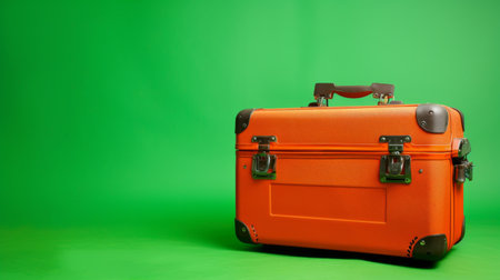 Orange travel suitcase, on orange background. Trip concept. Generative AI.