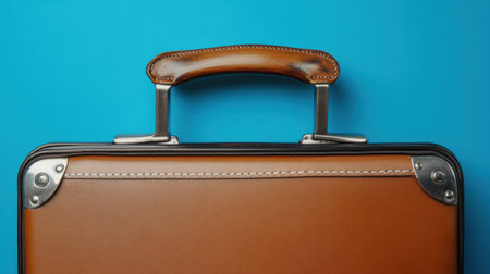 A vintage brown leather suitcase rests against a vibrant blue background, showcasing its timeless design and classic appeal, perfect for travel-themed projects and retro aesthetics.