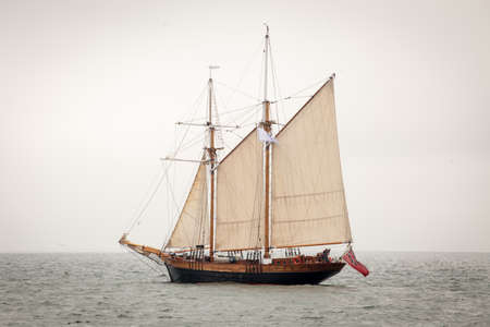 Sailing ship in the sea. Panoramic view of the sailing ship.