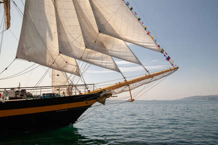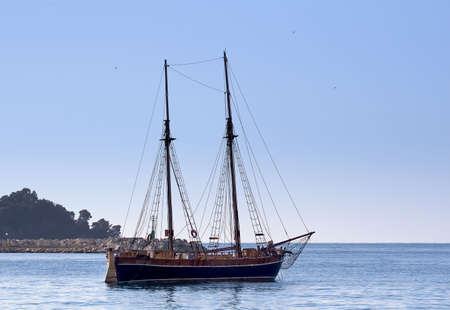 Sailing ship in the Mediterranean Sea on a sunny summer day.