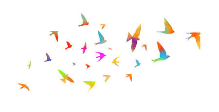 Banner of colorful birds silhouette watercolor illustration white background.