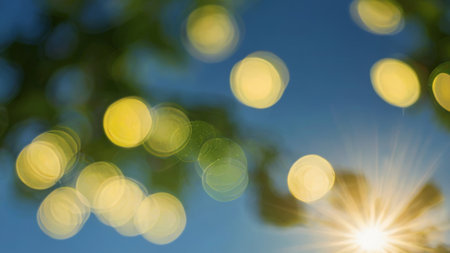Bokeh of the sun on a background of blue sky.