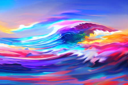 Abstract vibrant waves of liquid paint art illustration
