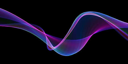 Abstract blue and purple wave on black background. 3D rendering.