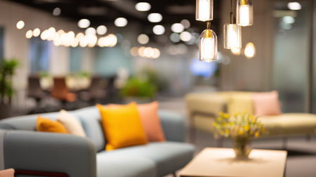 Blur interior of modern living room with sofa and light bulbs.