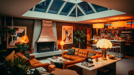 Inspiring office interior design Retro style Lounge featuring Vintage accents architecture. Generative AI AIG 31.