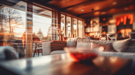 warm blurred showcase home interior illustration inviting viewer, peeking comfortable, living space warm blurred showcase home interior