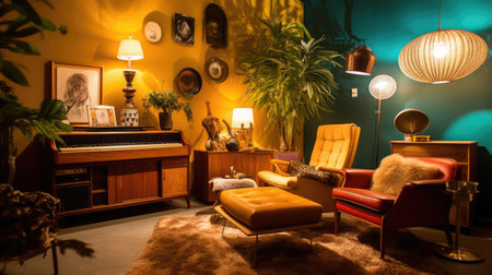 Inspiring office interior design Retro style Lounge featuring Vintage decor architecture. Generative AI AIG 31.