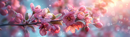 Springtime Blooms Close-Up of Delicate Pink Flowers on a Tree Branch in a Sunny Garden