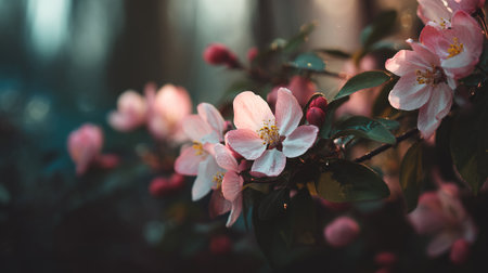Serene Pink Blossoms in Soft Focus Against a Dark Background
