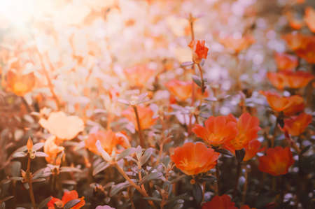Closeup of yellow mini flower under sunlight with copy space using as background natural green plants landscape, ecology wallpaper cover page concept.