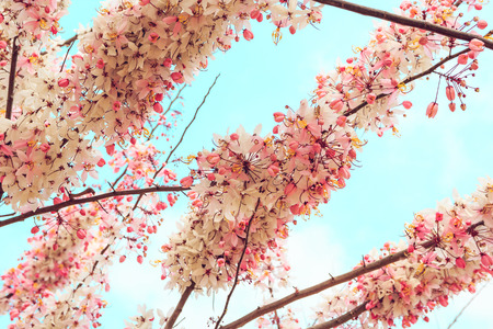 Pink flower, Cassia Bakeriana, Sakura Color Chan in Thailand. Vintage color tone effect
