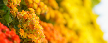 AI Generated. A bunch of orange and yellow flowers are arranged in a row