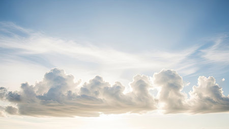 AI Generated. Fluffy white clouds over rich blue sky create soft and serene atmosphere
