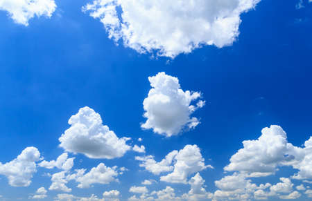 Beautiful white fluffy clouds with blue sky background, nature weather.