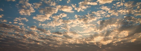 Panorama of blue sky with cloud at sunset. Panoramic image.