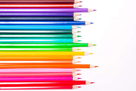 line of colored pencils white background, save clipping path,a symbol of LGBT
