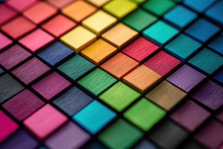 Explore a vibrant grid of multicolored glossy squares showcasing a rich texture and modern design, ideal for creative projects and artistic backgrounds.