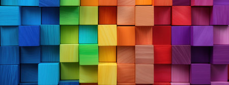Expertly Composed Wide Format Of Vibrant Wooden Blocks Artistically Arranged. Concept Abstract Photography, Creative Composition, Colorful Wooden Blocks, Artistic Arrangement, Wide Format Photography.