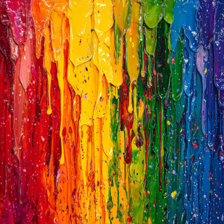 Colorful abstract painting with thick layers of dripping paint