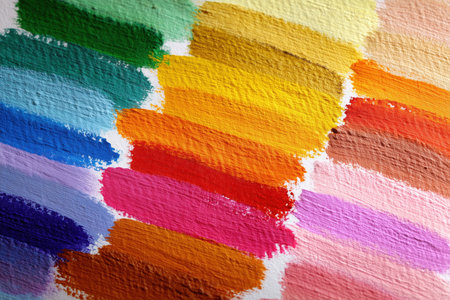 Strokes of colorful acrylic paints on canvas, closeup