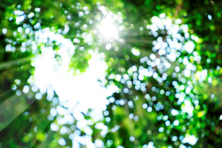 Abstract blurred nature background with bokeh for creative designs. Green leaves bokeh out of focus background from nature forest.
