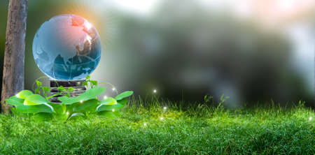 3D illustration Renewable energy concept Earth Day or environmental protection Protect the forests that grow on the ground and help save the planet.