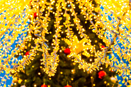 Christmas decoration background, defocused lights glowing