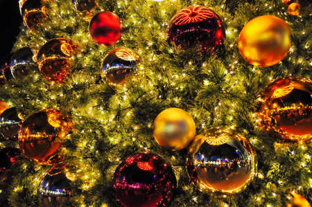 Christmas decoration in Christmas tree with Christmas lights