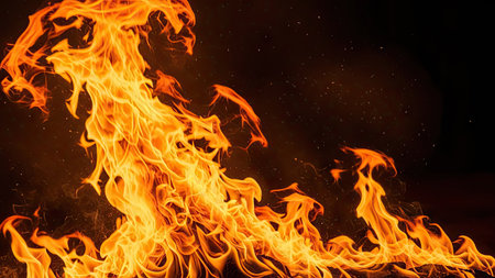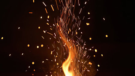 fire flame orange sparkles motion in dark wallpaper pattern background space for copy or your text here
