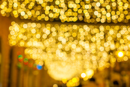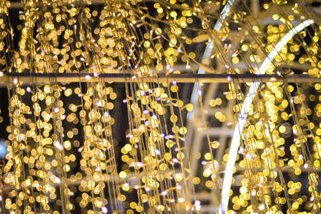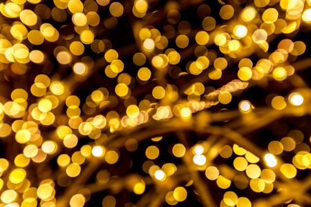 Abstract circular bokeh background of Christmaslight. bokeh from garlands. background for screensaver. Defocused lights. Blurred bokeh with yellow color lights