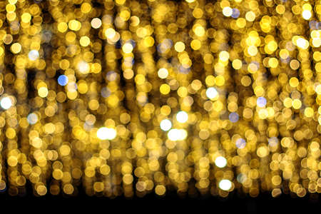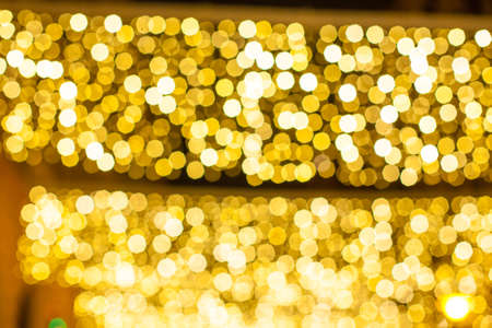 Light bokeh defocused background. Blurred photo of Christmas lights. golden light effects. holidays, background and illumination concept