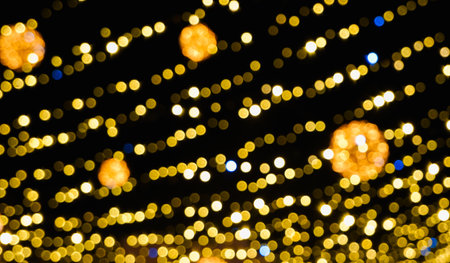 A mesmerizing display of golden bokeh lights creates a warm and inviting abstract background, perfect for adding a touch of magic to any festive occasion.