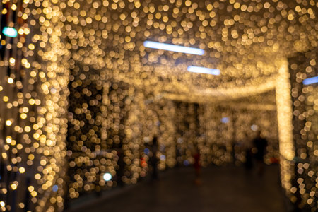 abstract blurry bokeh background of night light, Christmas party background, blurry patten in gold bright shiny, defocused disco illuminated design