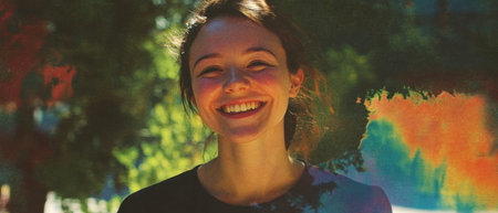 A portrait of a young, vibrant woman joyfully smiling at the camera, ai-generated