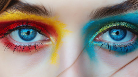 Close-up shot of beautiful woman's eyes with multicolored makeup