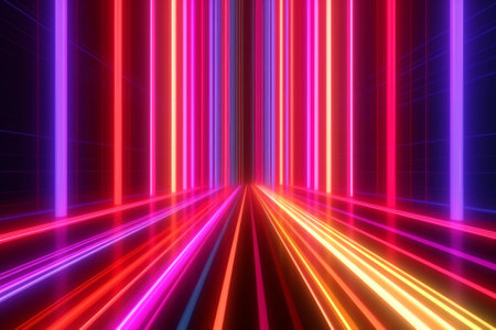 Vibrant glowing neon lines overlay creating dynamic background texture