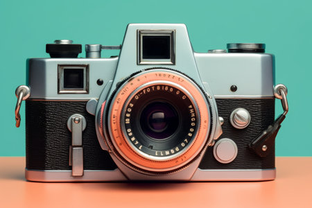 Vintage analog camera with clean lines and retro color palette, symbolizing the nostalgia, snapshots from the 80s