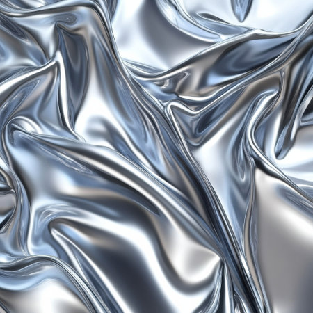 A close-up view of a shimmering metallic fabric, showcasing delicate smooth waves and reflective surfaces that create a vibrant, modern aesthetic.
