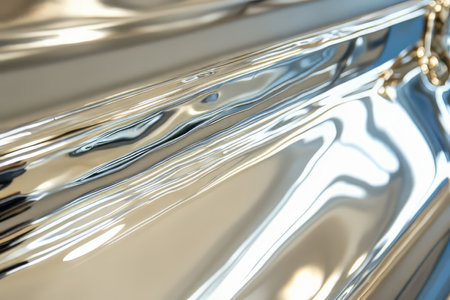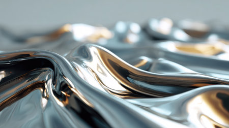 Close-up of a reflective metallic surface featuring smooth, flowing textures and highlights