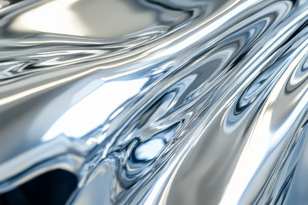 Reflective chrome texture showcasing sleek and shiny surface with captivating fluid patterns