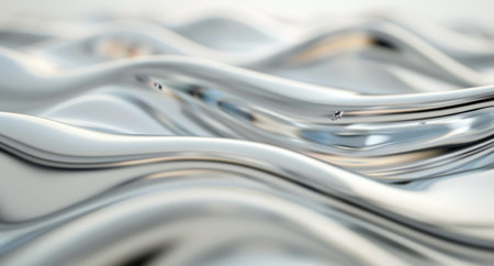 This captivating abstract artwork showcases smooth metallic liquid surfaces, creating a dynamic and elegant visual experience filled with mesmerizing reflections and fluid patterns.