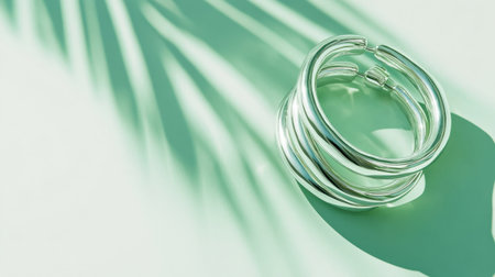 This stunning image features elegant silver hoop earrings, casting beautiful shadows on a soft green surface. Ideal for jewelry displays or fashion projects.